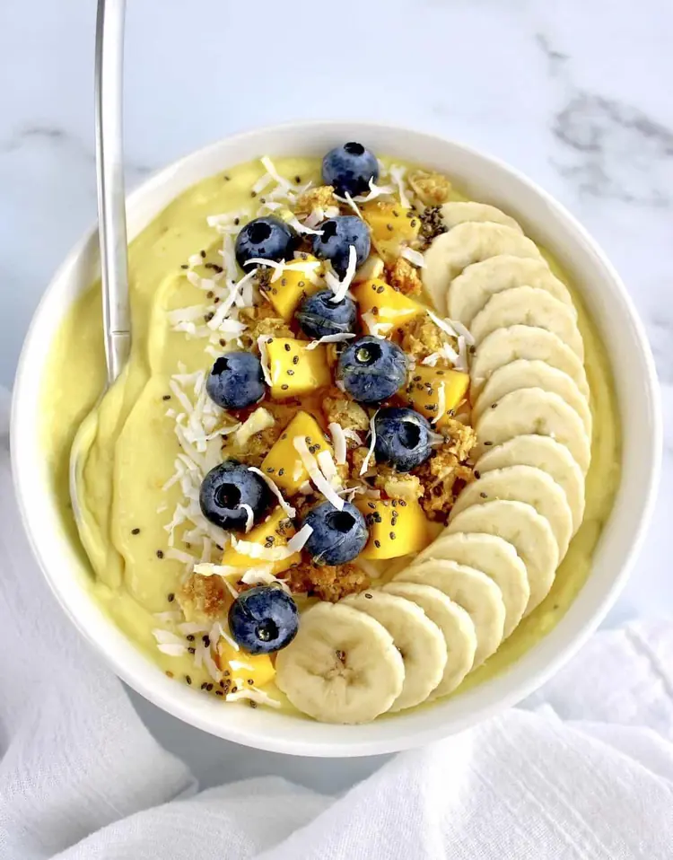 TROPICAL BOWL Smoothie a base di passion fruit, ananas e mango, con frutta di stagione, mix di semi, meringhette e flakes di cocco €10